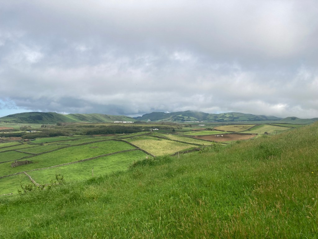 At the top, you’re rewarded with wide-open views of the island’s patchwork fields, forests, and rolling volcanic ridges. The landscape feels wild and peaceful — a great place to stop and breathe.